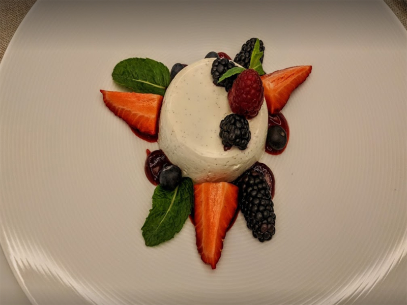 ตบท้ายด้วยของหวานคือ LIGHT AND SMOOTH PANNA COTTA เนื้อสัมผัสนิ่ม ละเอียด และรสชาติกลอมกล่อมละมุน ละลายในปาก มีความสดชื่นจากเบอร์รี่รวมที่เมื่อทานเสร็จแล้วทำให้อาหารมื้อนี้เป็นหนึ่งในมื้อที่ดีที่สุด