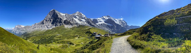 1 หมู่บ้านสวิส Iseltwald ใกล้ Sigriswil และ Grindelwald พิกัด Interlaken